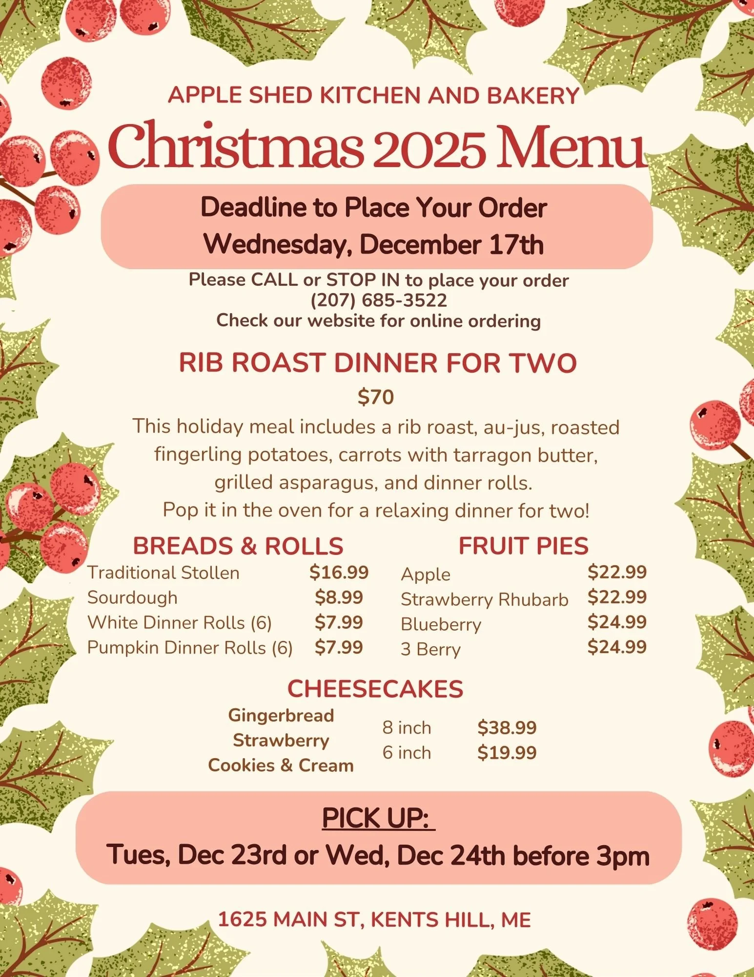 We change our kitchen offerings weekly and our bakery items daily. Check out our menus below. See you soon!